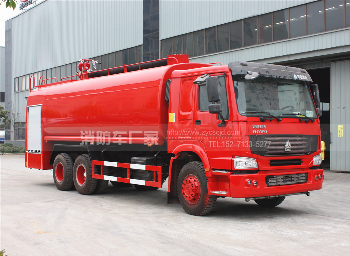 重汽豪沃25噸消防灑水車,在重汽原裝二類底盤上改裝而成,載液量25立方,配備常用消防器材,具有機動性好,操作方便,射程遠的特點,適用于消防隊,專職隊、大型企業、港口、碼頭、工業園、風景區等場所。